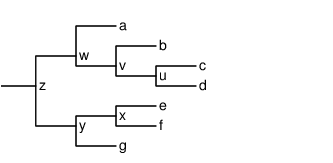 a generic schematic of a tree with eight leaves might appear as