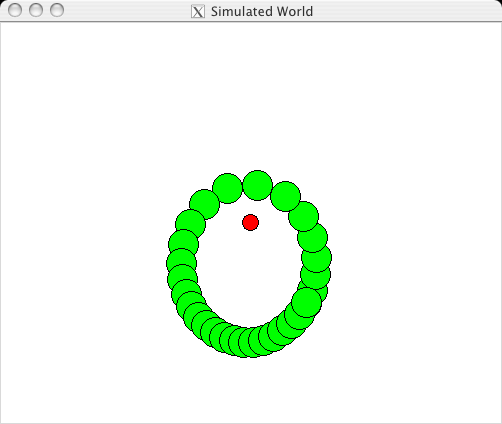 Our software will explicitly rely on each of the above methods, so you must be careful to accurately reflect the given specifications. For most, the desired behavior should be self-evident from the method names. The advance method warrants further explanation. Your Ball objects will live in a World that will have been created by our part of the software. The World is built as an extension of a Canvas but has additional code which acts as a clock in some sense. For each tick of the clock, the world will call the method advance method for each object in the world, sending a reference to the world as a parameter. The behavior of the method for a given object should be to update the state of that particular object for one simulated timestep.