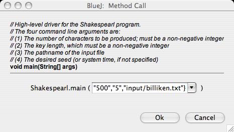 You can test your extra credit routine by starting the program with the method Shakespearl.mainExtra(), rather than with the method Shakespearl.main().