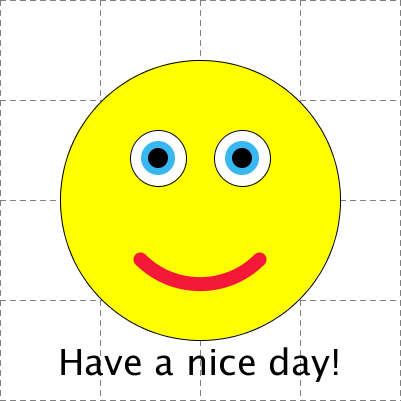 Uses: Variety of circles, Spline for the mouth, and Text label