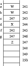 assigns the value of the object pointed to by e (i.e., that at address 246) to be equal to the object pointed to by d. This first change is made moot by the subsequent*e=*d;