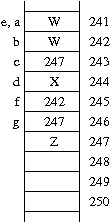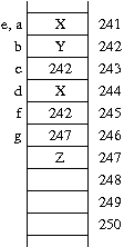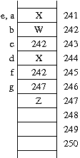 assigns the value of the object pointed to by e (i.e., that at address 246) to be equal to the object pointed to by d. This first change is made moot by the subsequent*e=*d;
