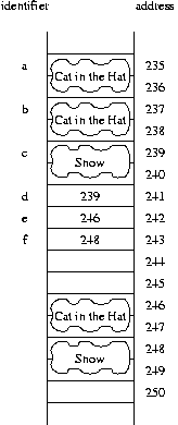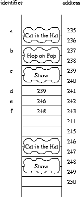first assigns the state of b equal to the current state of a. The second command changes the state of a (yet has no effect on b). The resulting picture is portrayed asb=a; a.setBook("Hop on Pop");
