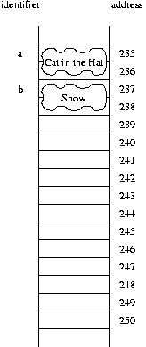 examples in class on the blackboard, showing the underlying memory