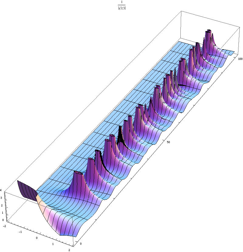 - 1/|ζ(z)| on [-2,2]x[0,100]: Image.