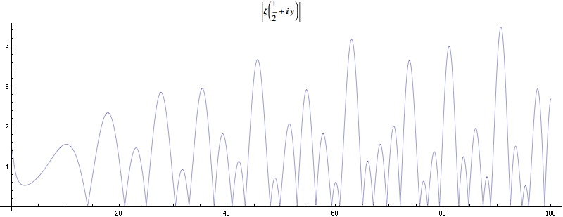 - |ζ(½ + iy)| for y in [0,100]: Image.