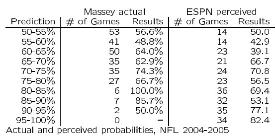 by Massey's computer model and by ESPN pool entrants, NFL 2004-5