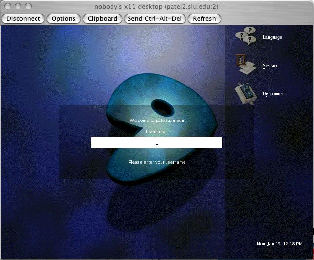 In order to let you access patel2 from other machines, while using a Graphical User Interface, we will be relying on open source software known as Virtual Network Computing (VNC). To use this via the Internet, please open a web browser and go to the URL patel2.slu.edu/vnc/.
