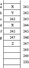 assigns the value of the object pointed to by e (i.e., that at address 246) to be equal to the object pointed to by d. This first change is made moot by the subsequent*e=*d;